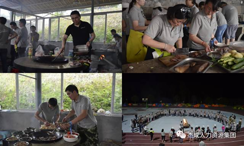 在接下来的安营扎寨、埋锅造饭项目中,各小组内部分工合作,每位队员都积极参与,各司其职,各尽其力,场面如火如荼。在篝火晚会时,精彩纷呈的节目表演让人目不暇接,突如其来的批判大会最后竟反转为令人惊喜的生日祝福。